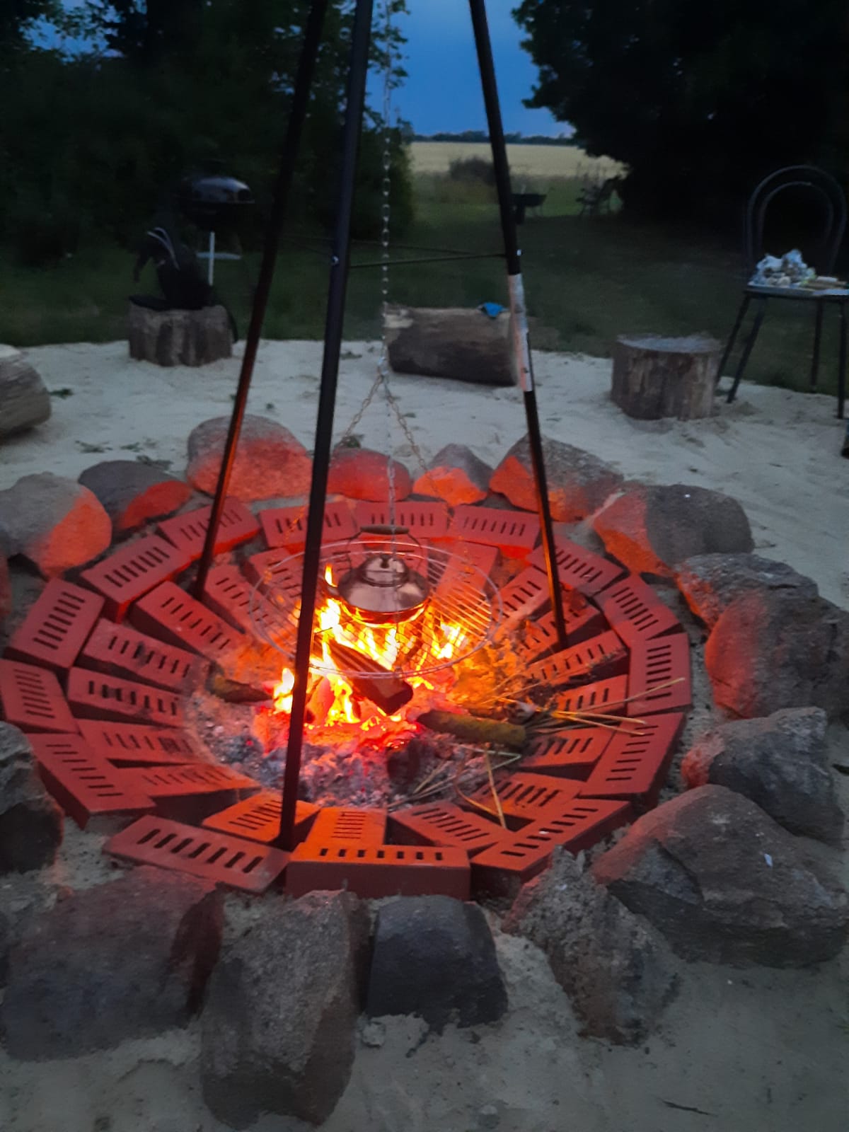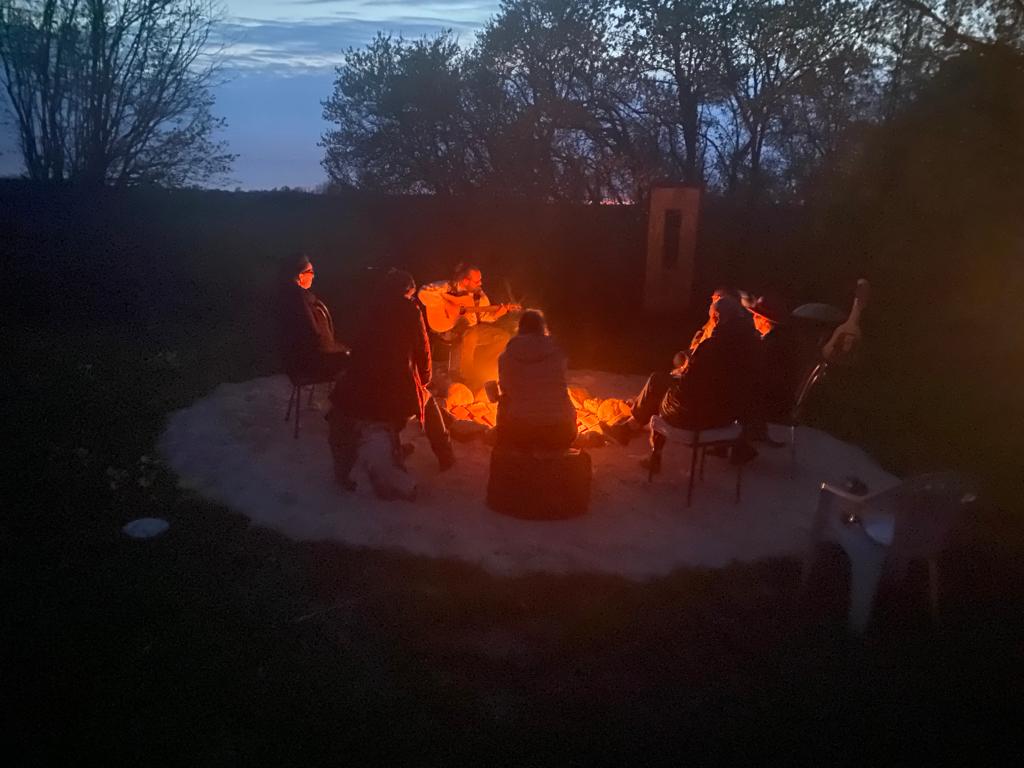 Unter diesen Möglichkeiten befinden sich die Terrasse vor dem Empfangsbereich, eine überdachte Außenbühne, die sich auch als Seminarraum nutzen lässt sowie ein schöner Platz zum Grillen und für Lagerfeuer.